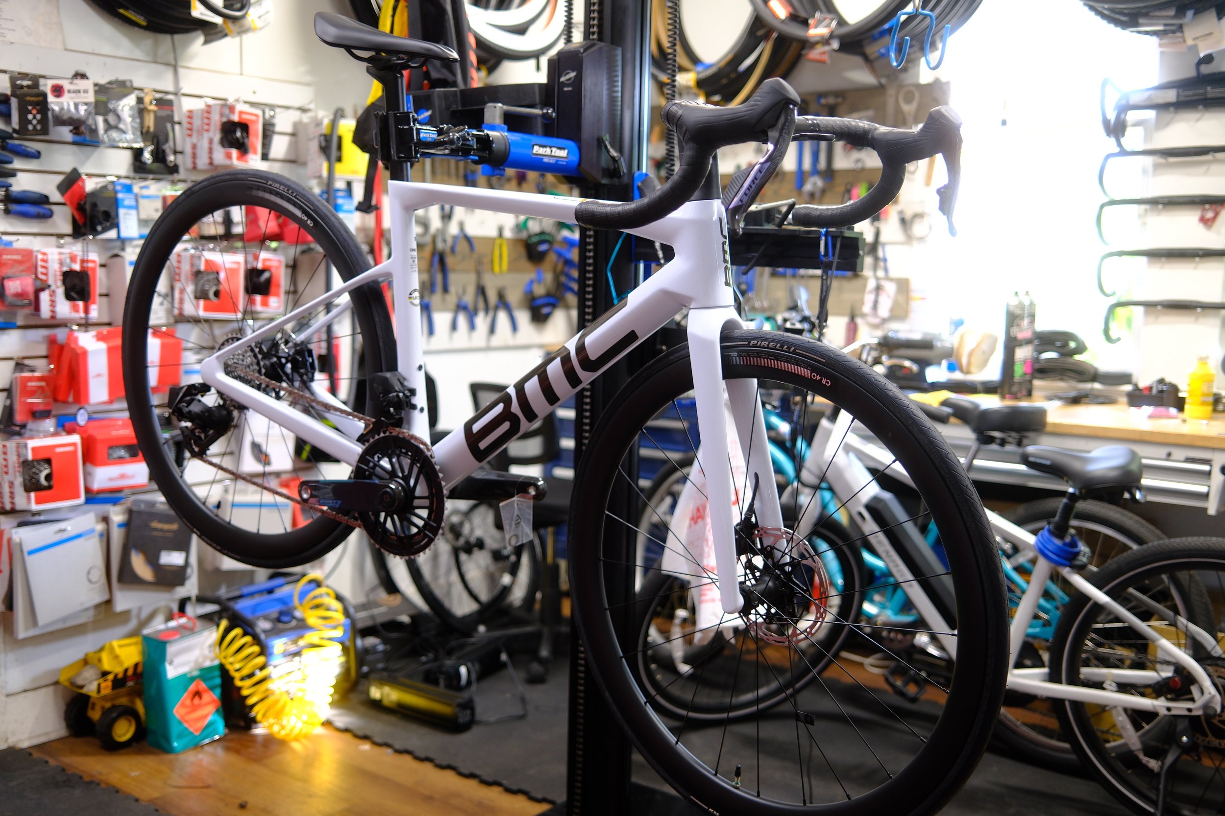 If this BMC Speedmachine 01 build caught your eye, we invite you to come see it in person. The photos do not do it justice — the matte white finish, the Princeton wheels, and the clean integration of the Shimano 105 Di2 system are something you need to experience firsthand.