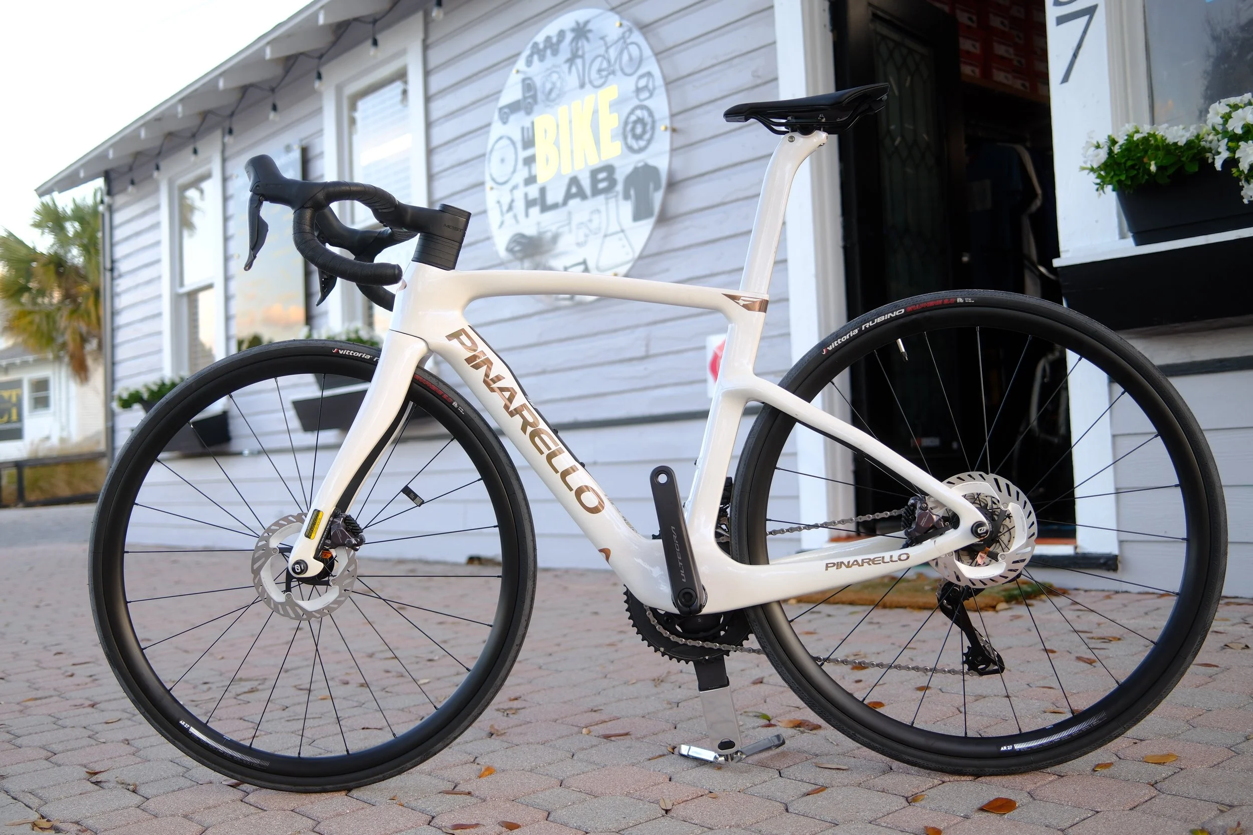 The Pinarello F7 with Shimano Ultegra Di2 and MOST Ultrafast 45 wheels is on the floor now at The Bike Lab in Dunedin, Florida. Photos and specs only tell part of the story — you need to throw a leg over it and feel the fit, the stiffness, and the quality of this build in person.